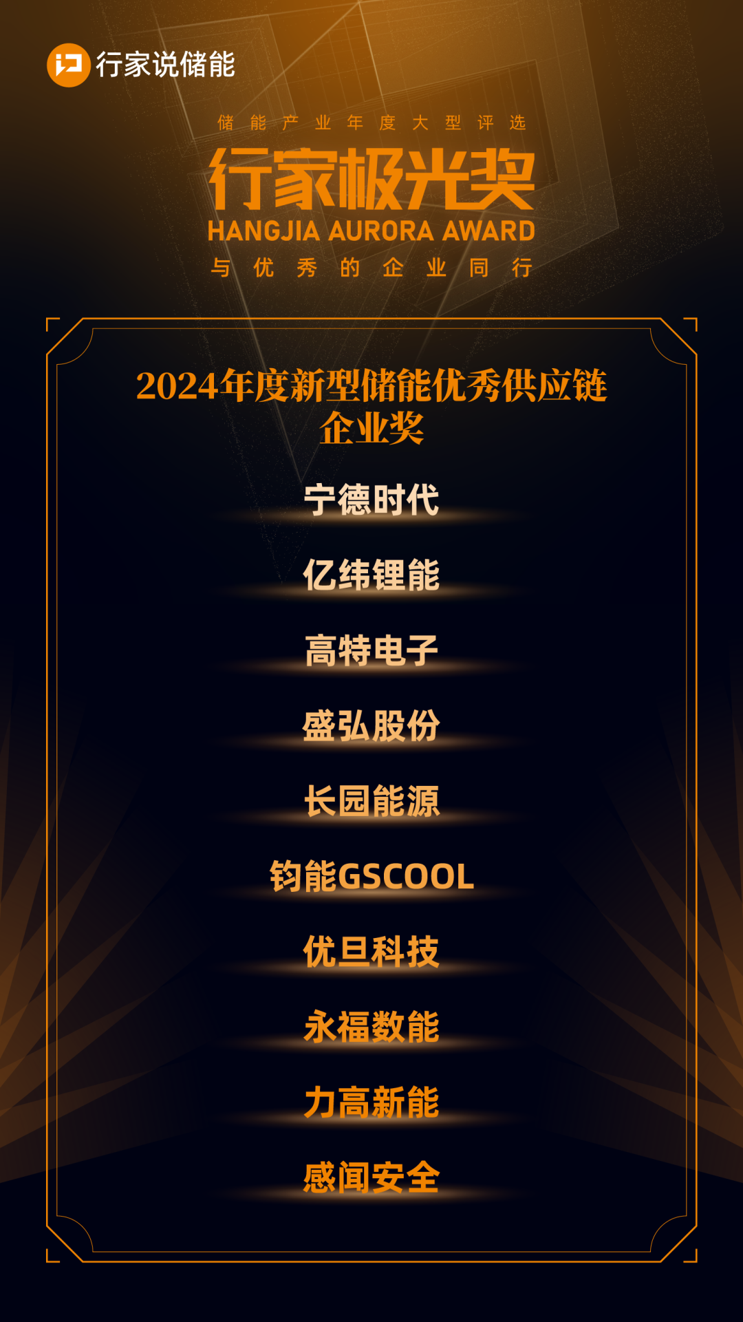 年度新型储能优秀供应链企业奖